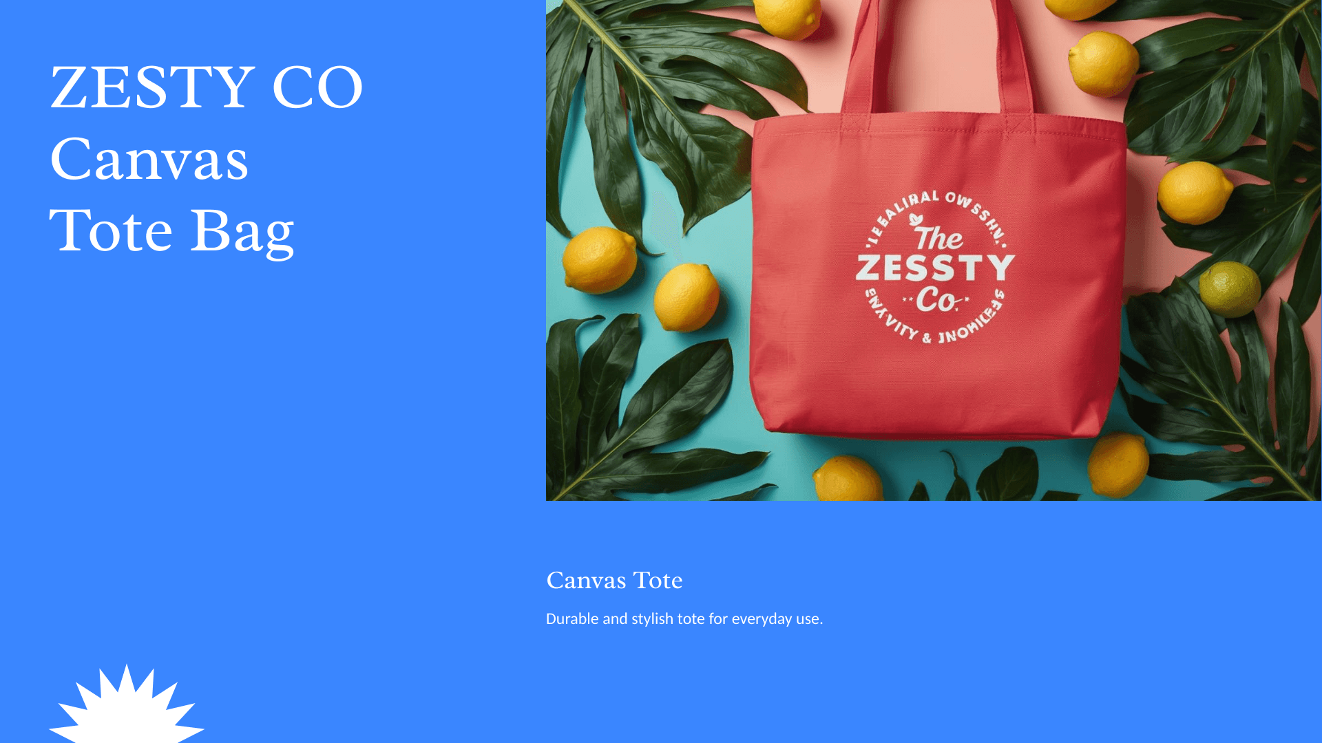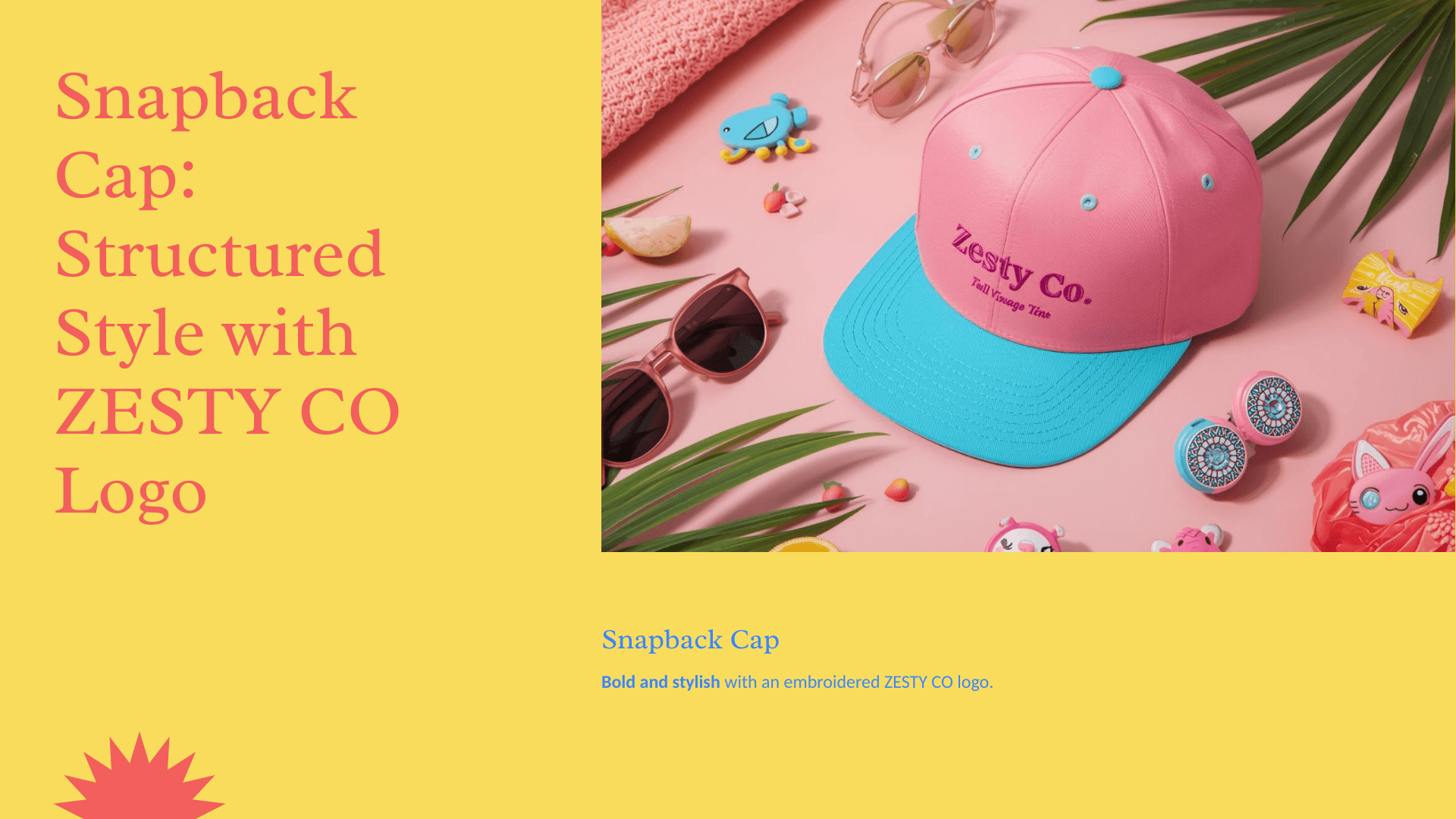 To create a visually compelling, brand-consistent presentation that communicated the look, feel, and personality of the Zesty Co. merchandise line — positioning each product clearly for retail, wholesale, or partner audiences.